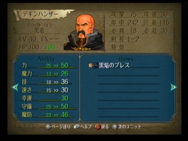 原作デギンはブレスがそもそも『威力25・命中115・必殺0・重量1・射程1~2』とかいうイカレた数値してる癖にHP100・守備50・魔防46を持ってるし、何ならこの状態で毎ターンHP30回復の必殺無効で、真正面からタイマン張ると正直「ん?負けイベかな?」って思うくらい強い 救済措置でイナ、クルトナーガには一切攻撃しないロジックが組まれてるのでイナ、クルトナーガを育ててたら最弱ボス(ただし範囲攻撃で死ぬ)ともいえる